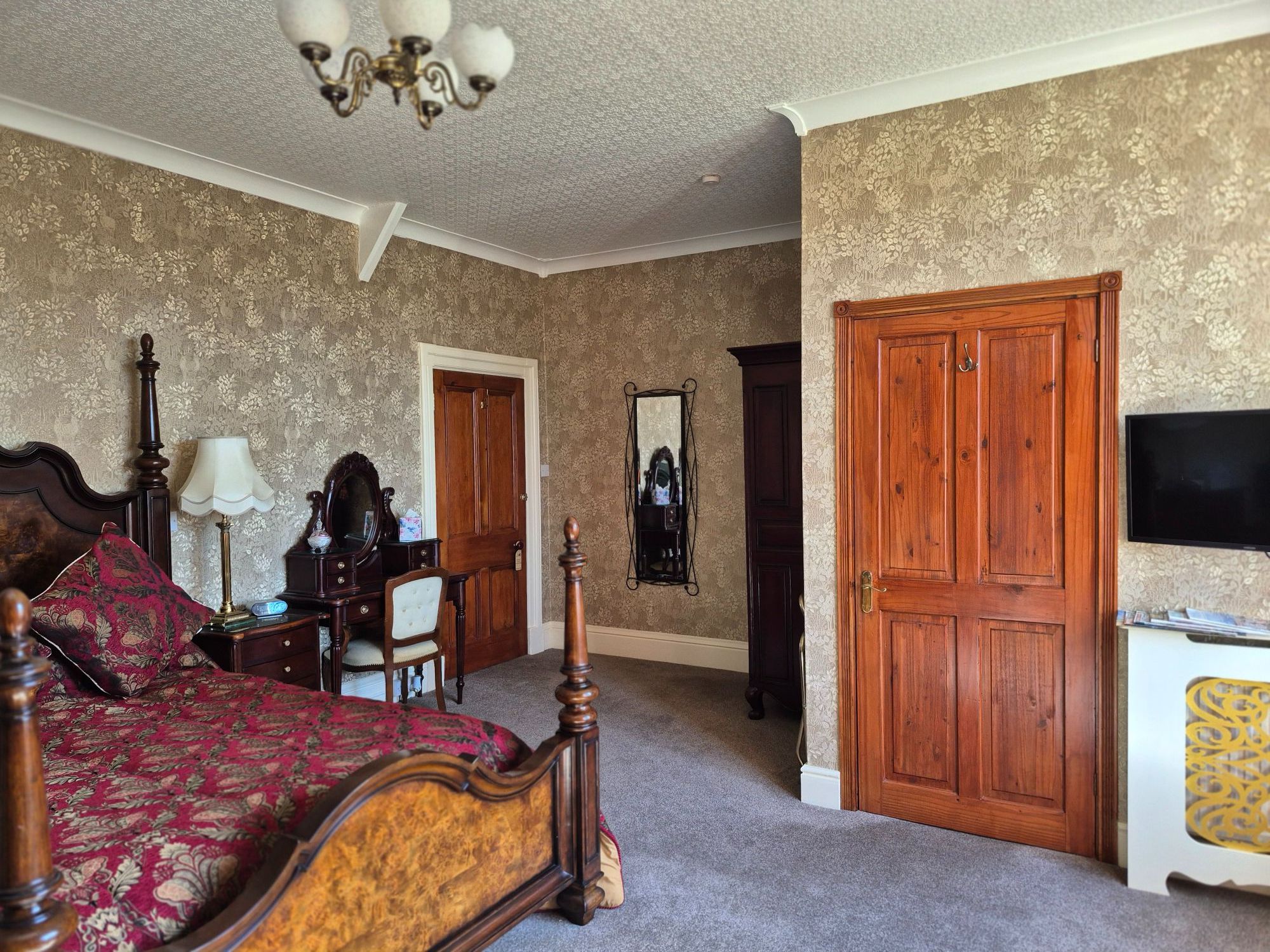 The room has a corner lounge with two chairs and a drum table so you can relax, unwind and soak up the victorian elagance.